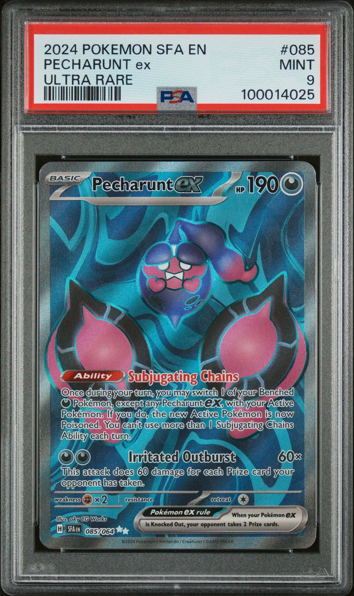 Enhance your Pokemon collection with the 2024 POKEMON SFA EN-SHROUDED FABLE 085 PECHARUNT EX ULTRA RARE, graded PSA MINT 9 for guaranteed quality. Discover the intriguing Shrouded Fable and elevate your deck with this highly sought-after card.